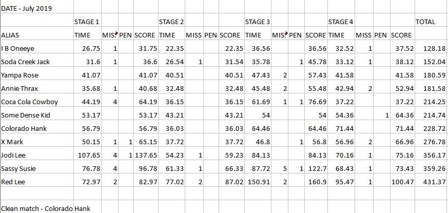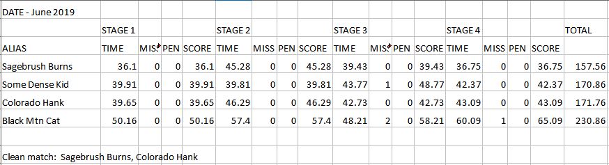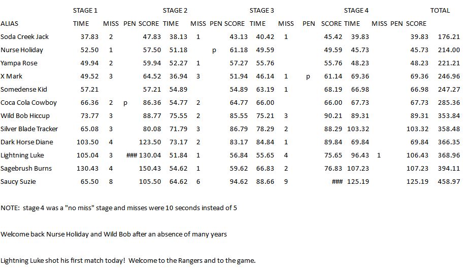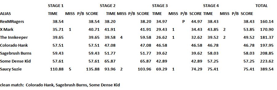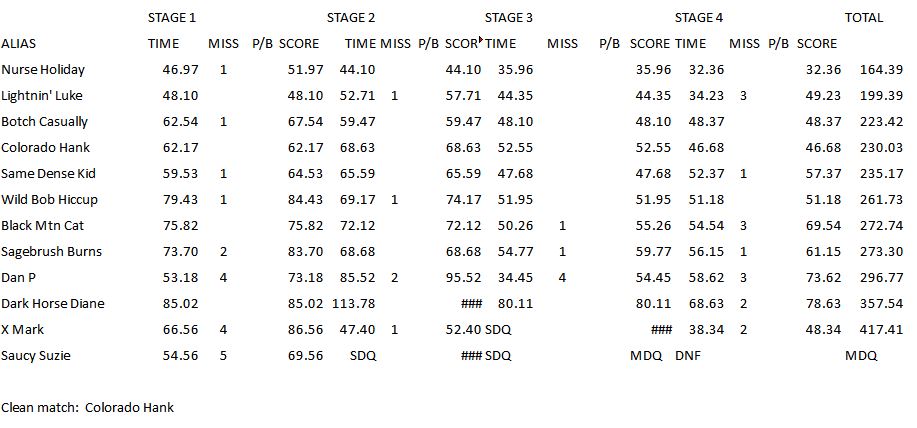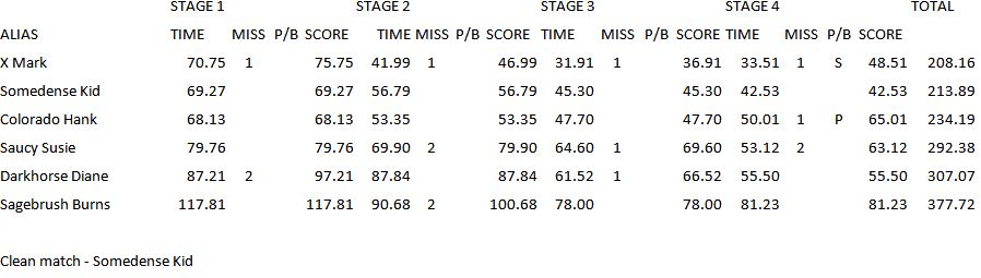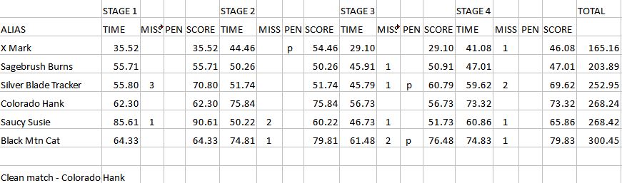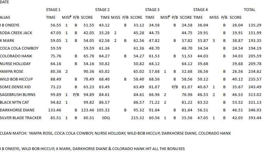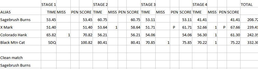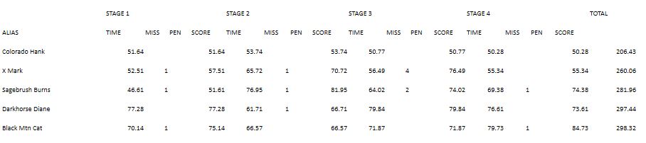 | ALIAS | TIME | MISS | PEN | SCORE | TIME | MISS | PEN | SCORE | TIME | MISS | PEN | SCORE | TIME | MISS | PEN | SCORE | |