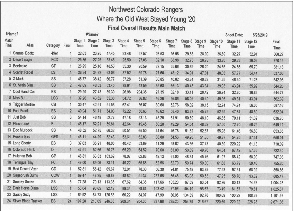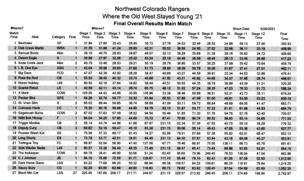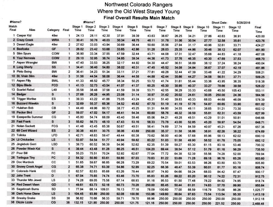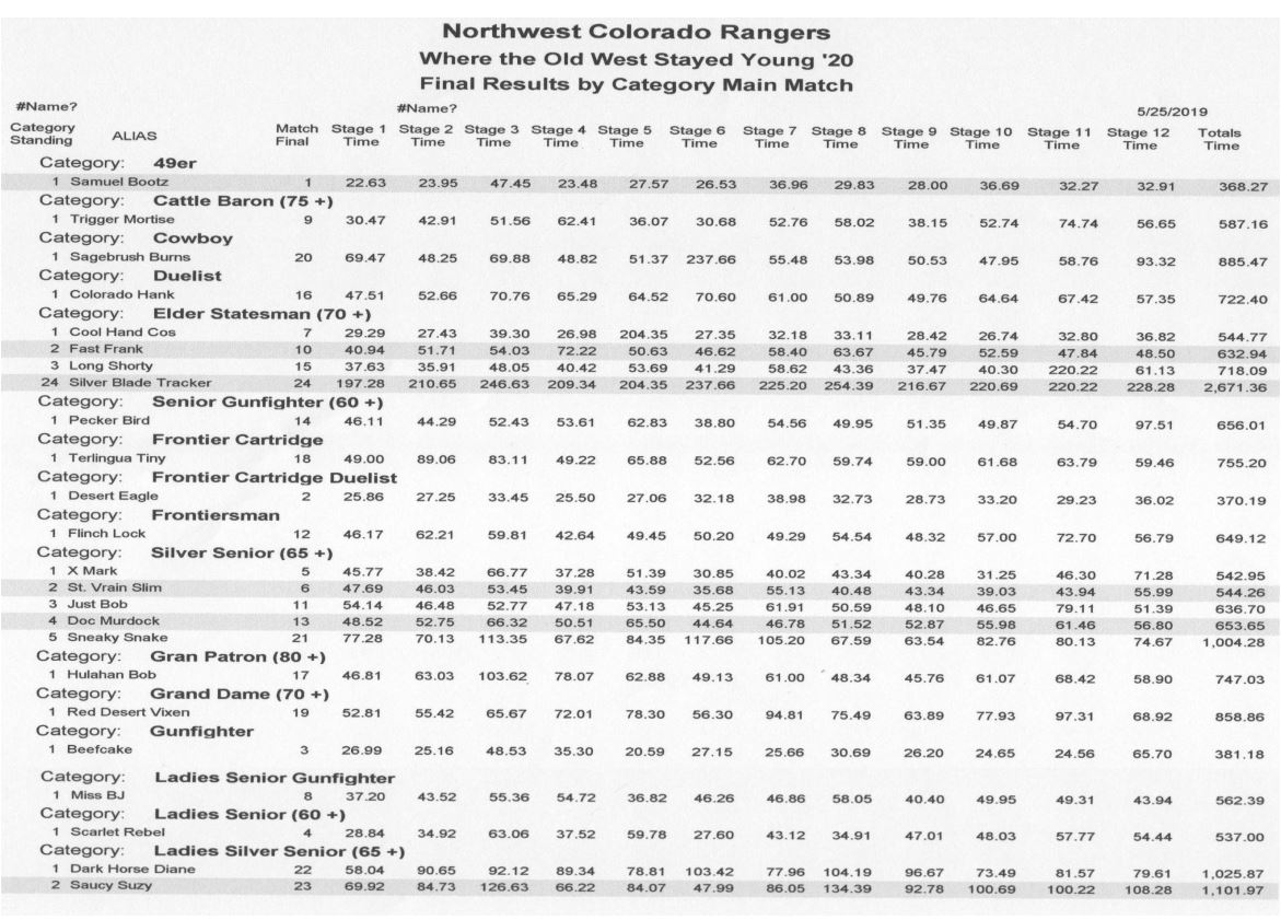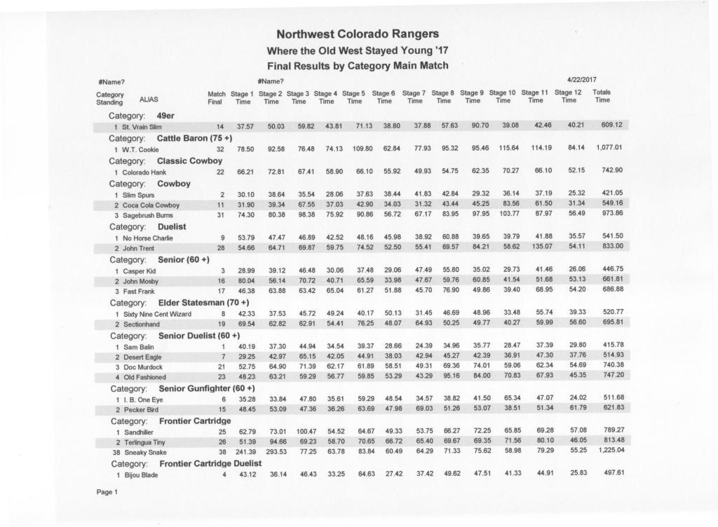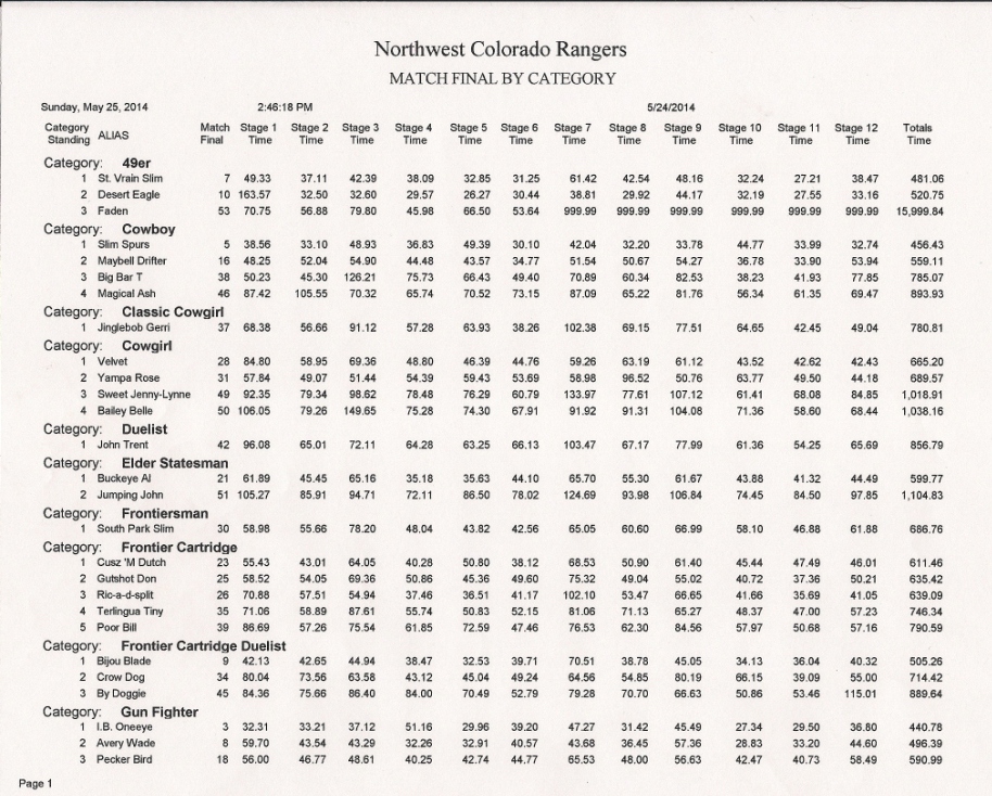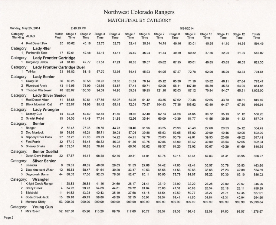 | Colorado Hank - classic cowboy | 59.78 | 59.78 | 61.42 | 61.42 | 52.05 | 52.05 | 59.83 | 59.83 | 233.08 | ||||||||