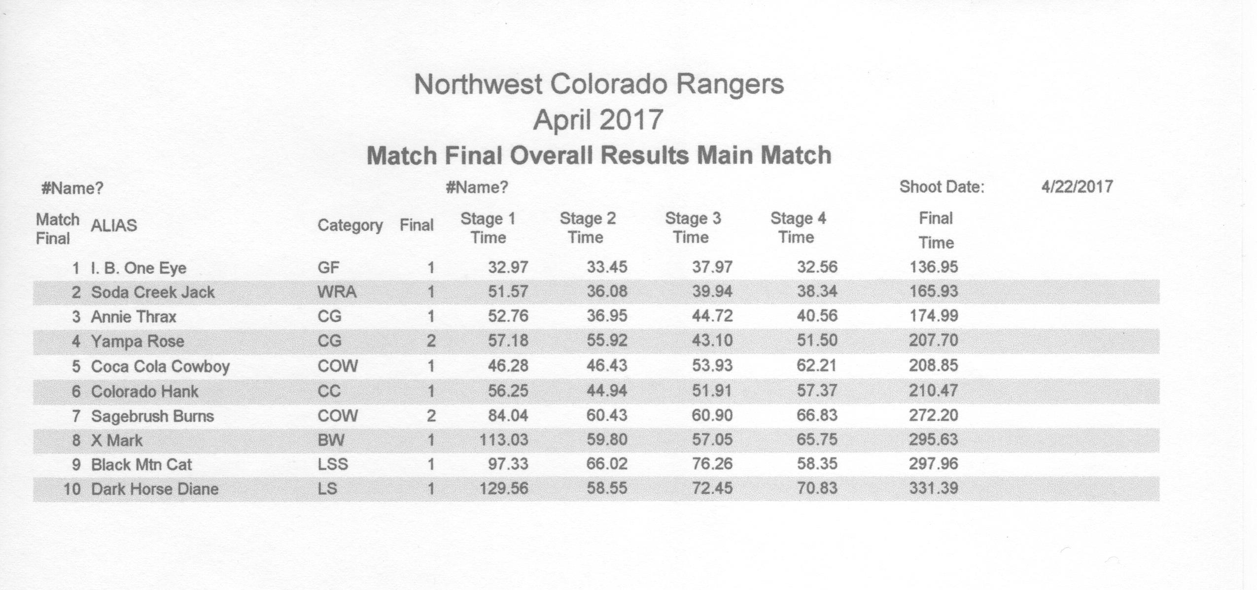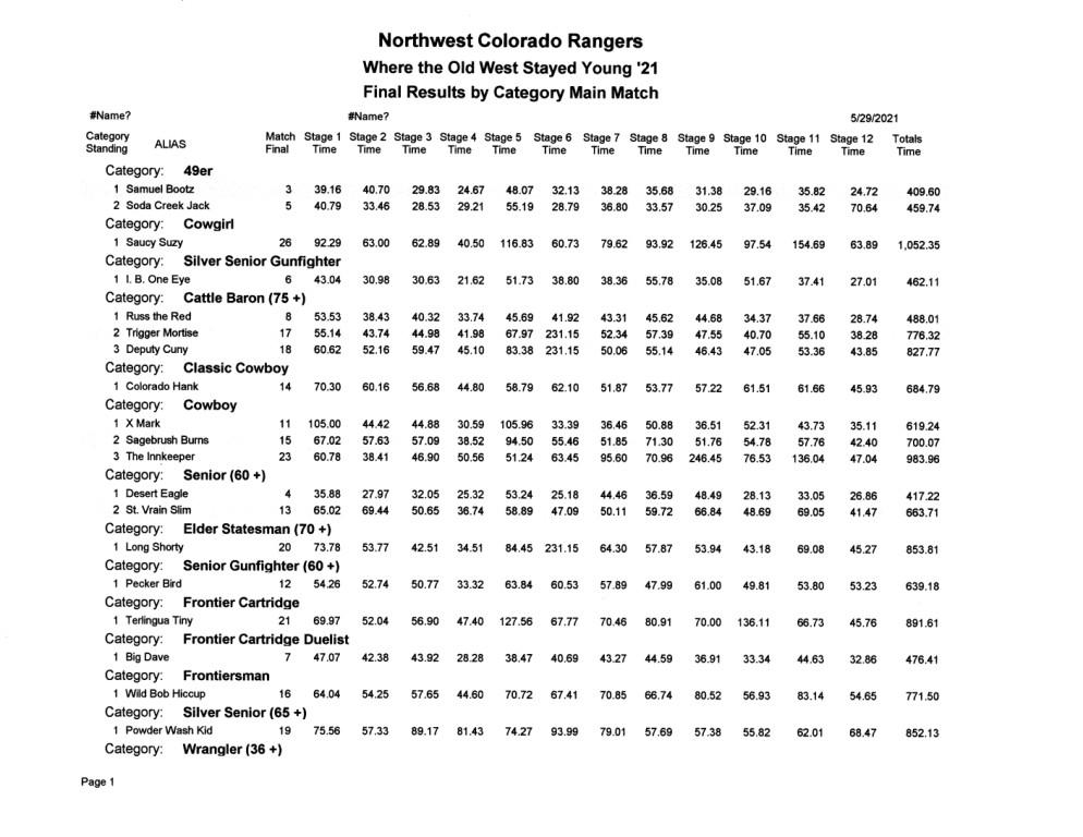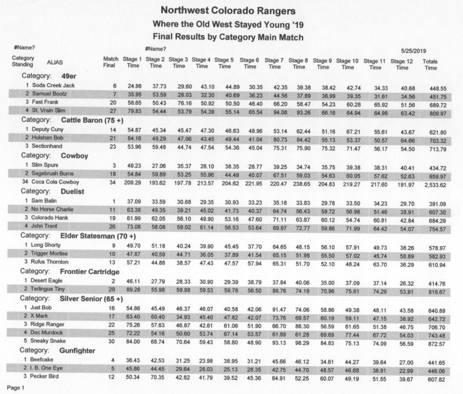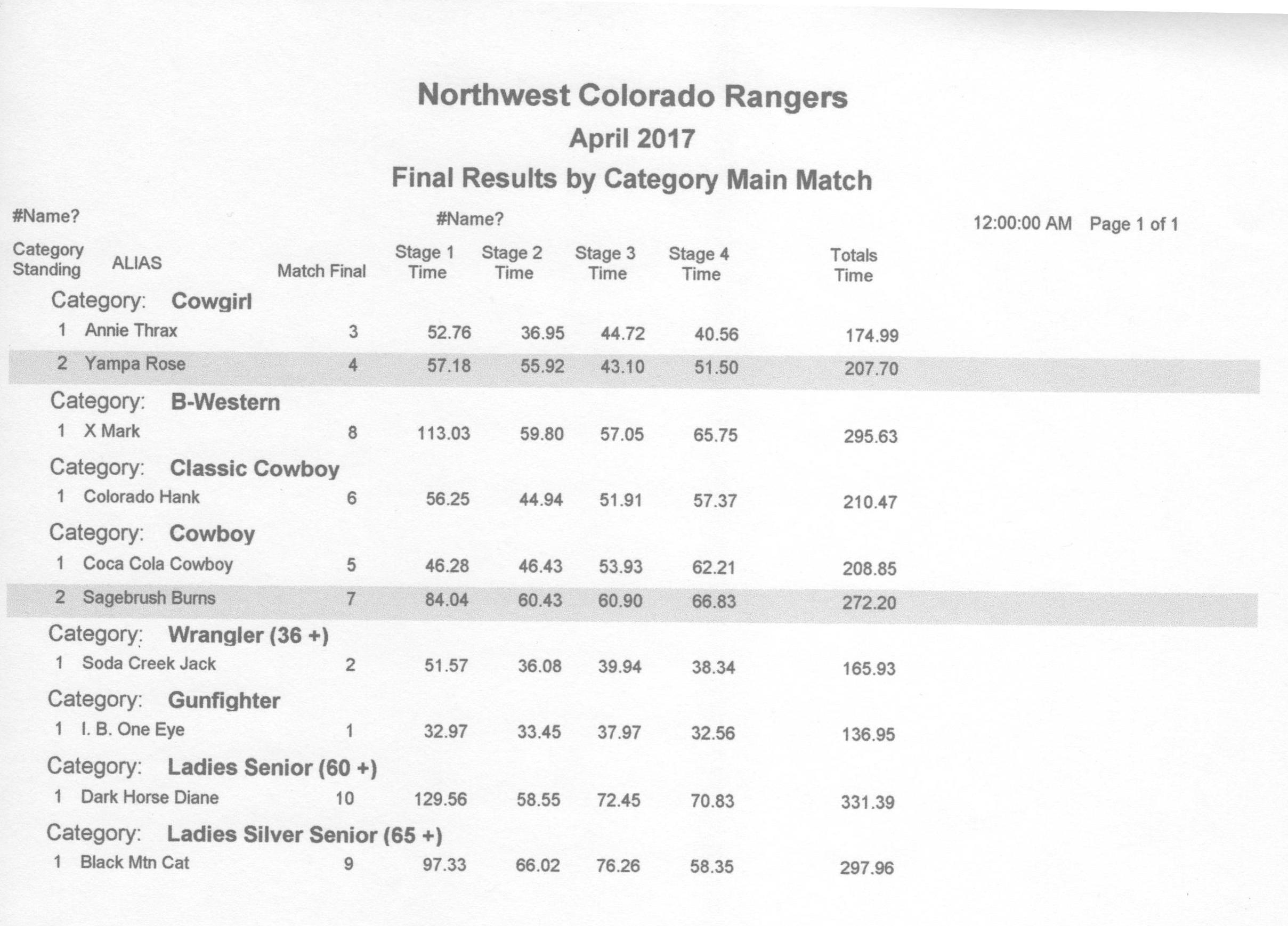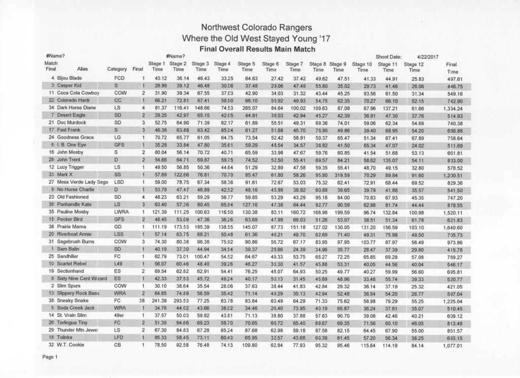 | Colorado Hank - classic cowboy | 59.78 | 59.78 | 61.42 | 61.42 | 52.05 | 52.05 | 59.83 | 59.83 | 233.08 | ||||||||